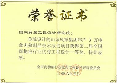 With solid strength in R&D and new technology promotion and application, Huashang International Engineering Co., Ltd. is a national high-tech enterprise. It has been recognized as Beijing Enterprise Technology Center, which has more than 50 patents and 200 federal, provincial, and ministerial awards; successively completed the compilation of over 60 national and industry association standards and norms, such as "Cold Storage Design Standards," "Code for Design of Cold Store," " Standard for Construction and Acceptance of Cold Store," " Code for Design of Pigs Slaughtering and Cutting Rooms," " Code for Design of Cattle and Sheep Slaughtering and Cutting Rooms," "Poultry Slaughtering and Segmentation Workshop Design Specifications," etc., and is the supervisory unit of Chinese Association of Refrigeration, China Association for Standardization Commerce and Trade Branch and China Commercial Cold Storage & Technology Information Center.