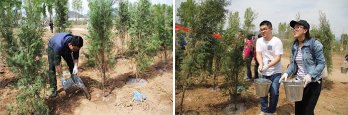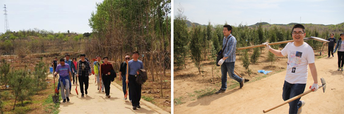 半小時前還是荒地,此時兩排整齊的小樹已立起,大家爭相和自己的勞動成果合影,每人都露出了燦爛的笑容,這里有我們種下的美好愿望,我們希望北京的天更藍、水更清、人更美。設計二所非常重視團隊建設,關注員工的身心健康。力求在繁忙緊張的工作之余組織多樣的活動,使員工勞逸結合、放松身心、同時增加團隊意識。此次組織的植樹活動把公益與休閑有機地結合在一起,受到員工的積極響應與熱烈歡迎。