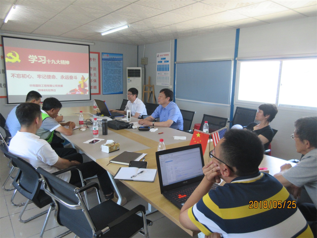 2018年5月25日,華商國際工程有限公司副總經理許靜東、黨委副書記何萬山來到我公司承接的總承包工程—虎門港聯想增益供應鏈華南總部基地項目(冷鏈三區)現場進行調研,并對在現場從事項目管理的我公司員工宣講了黨的十九大精神,同時代表公司黨委對項目現場員工進行了慰問。