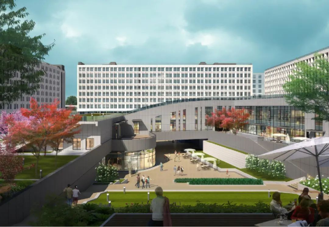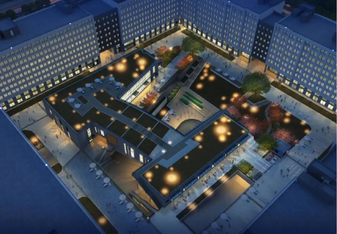 該項目設計融入了北京傳統“院落”模式,各樓分而不離,布局合理、分區明確。從地面景觀、下沉廣場和空中綠地三個層次,打造健康生態的景觀系統。