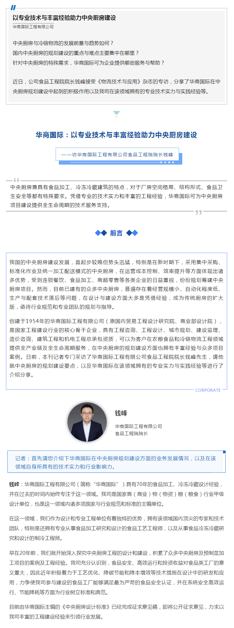 專訪 | 以專業(yè)技術(shù)與豐富經(jīng)驗助力中央廚房建設