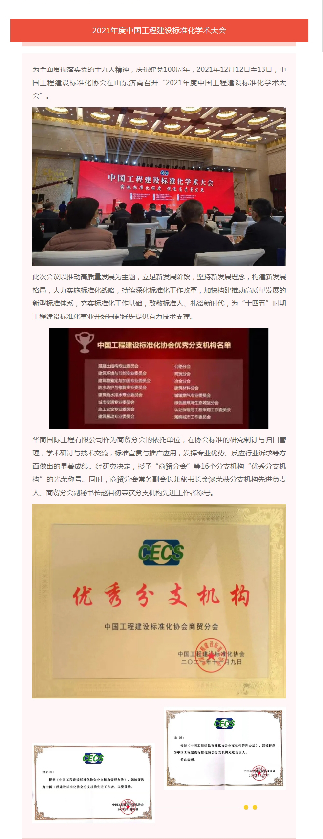 喜訊 | 中國工程建設標準化協(xié)會商貿(mào)分會喜獲優(yōu)秀分支機構榮譽稱號