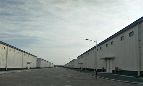 諸城棉花庫標準庫房(左)?和鋼罩棚(右)