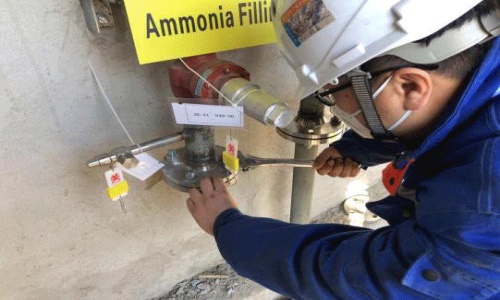 系統充氨試漏,是檢查制冷裝置的安裝、確保生產安全和設備正常運行的極為重要的環節?,F場工作人員有條不紊的完成各項裝置的氨試漏檢查。