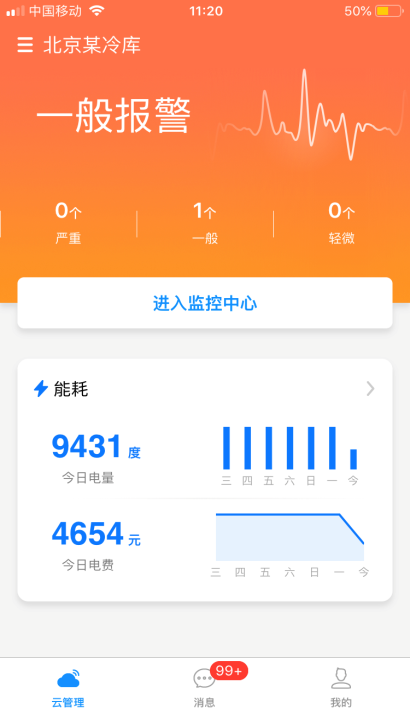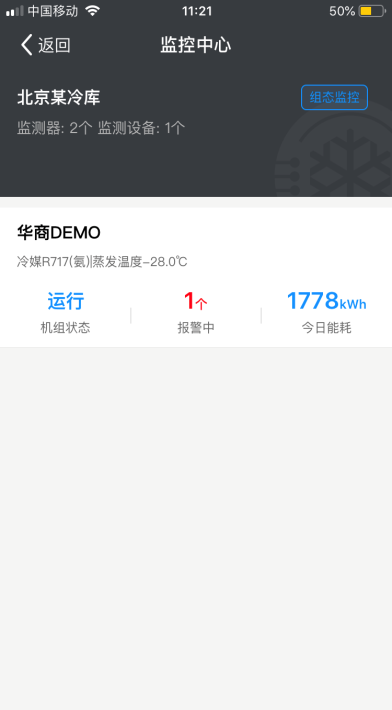 2. 在條件具備的情況下可使用APP應(yīng)用,在移動(dòng)設(shè)備端對(duì)制冷系統(tǒng)進(jìn)行云監(jiān)控。 如圖: