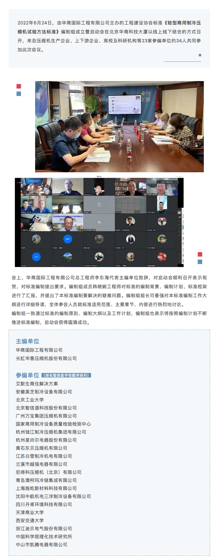 工程建設協會標準《輕型商用制冷壓縮機試驗方法標準》編制組成立暨啟動會